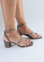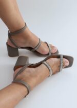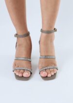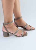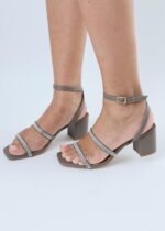 Elegância e brilho definem essa sandália de tiras finas com aplicação de pedrarias. Em um tom de cinza sofisticado, ela possui um salto bloco médio que oferece conforto sem perder o estilo. O design com bico quadrado e fechamento por fivela ajustável proporciona um ajuste perfeito, tornando-a ideal para eventos especiais ou para adicionar um toque de glamour ao seu dia a dia.