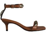 Apresentamos a sandália perfeita para quem busca elegância e conforto: um modelo em um sofisticado tom caramelo. Com seu salto baixo e fino, esta sandália combina estilo e praticidade, ideal para ocasiões especiais.